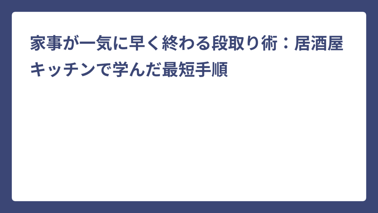 家事が一気に早く終わる段取り術:居酒屋キッチンで学んだ最短手順